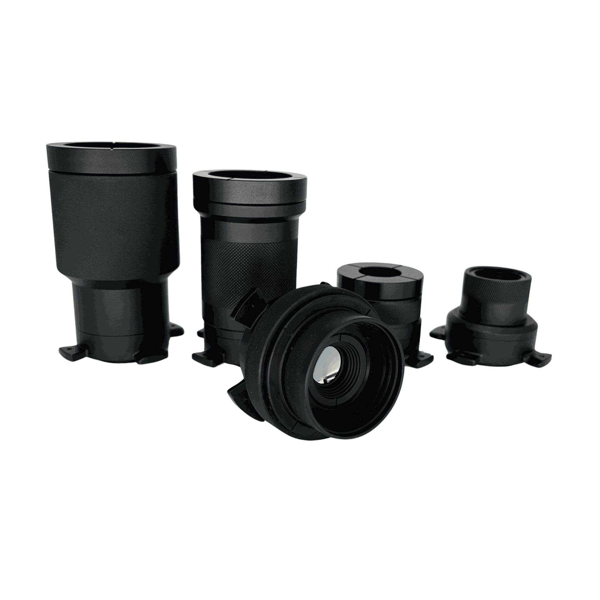 We developed a full suite of infrared lenses, enabling both microscopic and macroscopic temperature measurement. Lenses are manufactured from Germanium, Zinc Selenide, and Zinc Sulfide with anti-reflective coatings for maximum transmission in the long wave infrared region. Each lens is designed for maximum sensitivity, long working distance, and with minimum distortion for clear, precise imaging. We developed a bayonet-style mechanical interface enabling quick lens attachment and removal while maximizing thermal uniformity between the lens and camera body to maintain the high measurement accuracy.