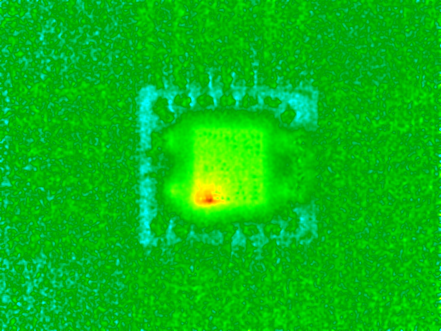 Because of the higher heat generation, these defects are often detectable with conventional thermal imaging. However, lock-in thermography improves detection by enhancing signal clarify and reducing background noise. The resulting thermal images provide precise localization of the short, even in complex circuit layouts.