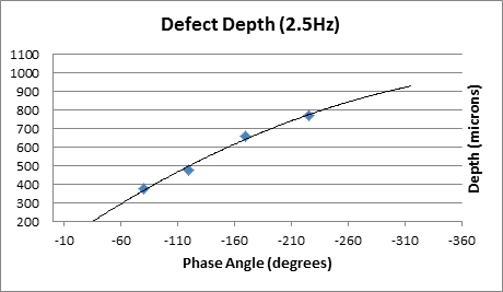 Phase angle represents the time delay between powering a device and subsequent heating on its surface and can be used to estimate fault depth. The magnitude of time delay, or phase angle, is dependent on defect depth but also on the thermal conductance of materials within the device.
